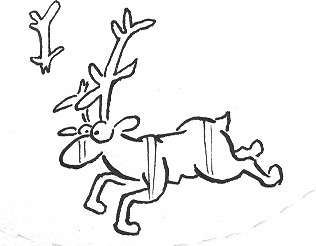 “NO!!” she cried! The little tree had toppled, and the silver reindeer decoration that Great-Aunt Morag had sent in an envelope marked ‘fragile’ was lying minus an antler and one leg in the middle of the floor. She grabbed the silver reindeer and stormed back downstairs. Max was hiding behind Mummy.